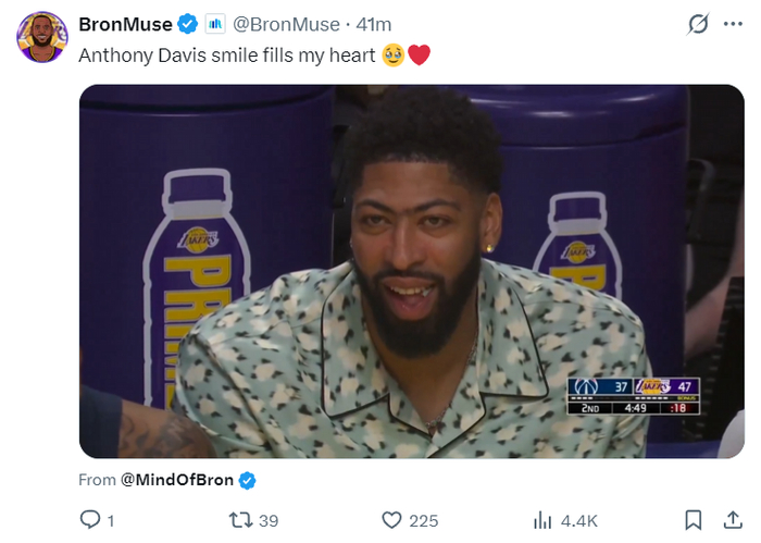 这场比赛也是奇才中锋安东尼-戴维斯重返湖人主场之战,不少的湖人媒体都表达了心酸,毕竟浓眉是这支球队的夺冠功臣之一。去年交易截止日被送到独行侠后,今年交易截止日他又被送到奇才,只可惜饱受伤病困扰。